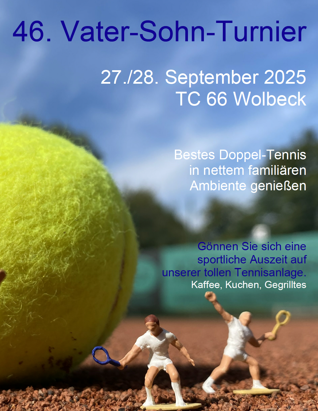 Am vergangenen Wochenende stand unsere Anlage ganz im Zeichen des 46. Vater-Sohn-Turniers. Bei bestem Tenniswetter erlebten Spieler und Zuschauer spannende Matches und die gewohnt besondere Turnieratmosphäre. 28 Paarungen traten in Wolbeck am letzten Septemberwochenende gegeneinander an.