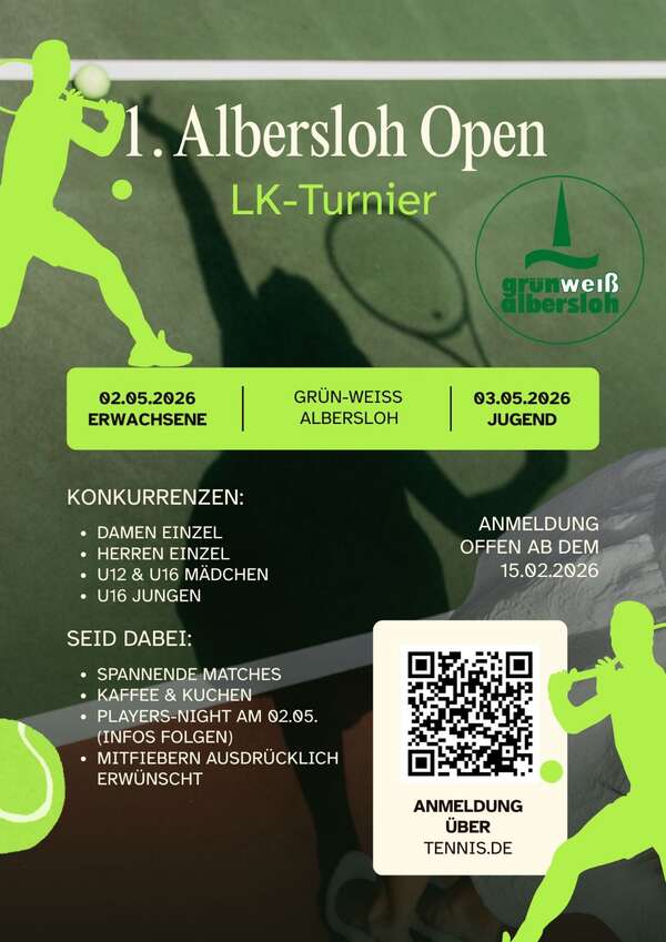 unser quasi Nachbarverein Grün-Weiß Albersloh lädt zu seinem 1. LK-Turnier ein.